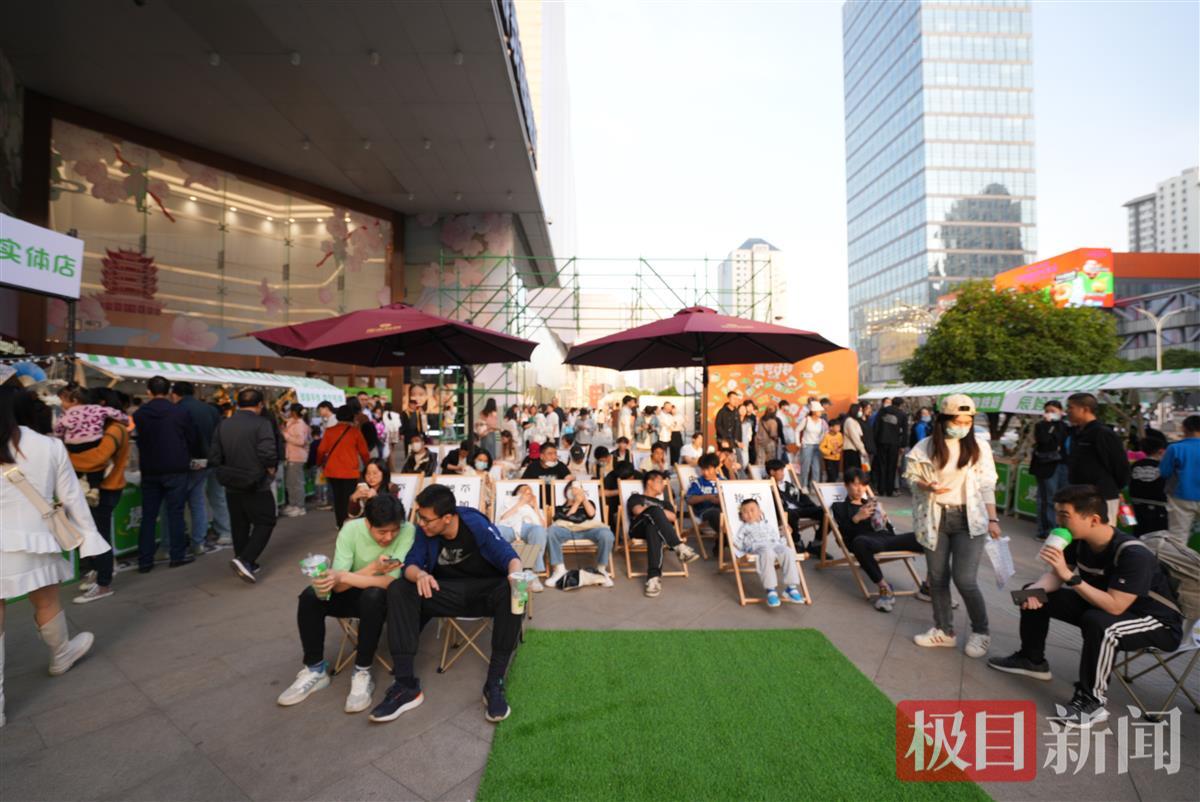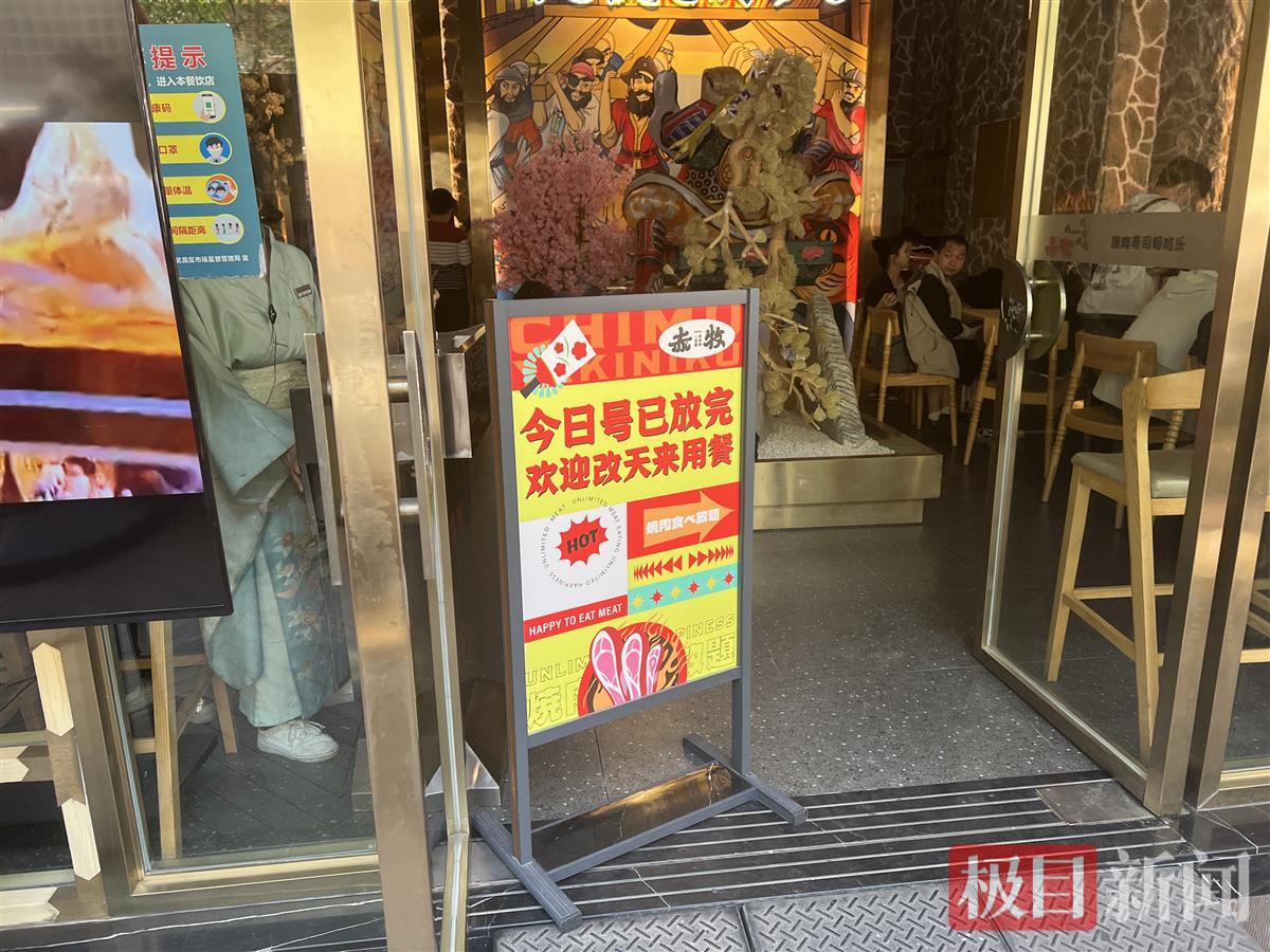 楚河汉街一街区的餐饮小吃店前均排起了长队,网红茶饮店点单取餐至少需要半小时,一家自助烤肉店门前更是摆出了“今日号已放完”的提醒牌。“五一假期客流量特别大,今天中午市11点多就已经放完号了。”该店工作人员介绍,中午店内只能接两轮顾客,一轮大概能容纳70多桌,“晚市人更多,我们已经把晚市的取号时间提前到了下午3点半。”