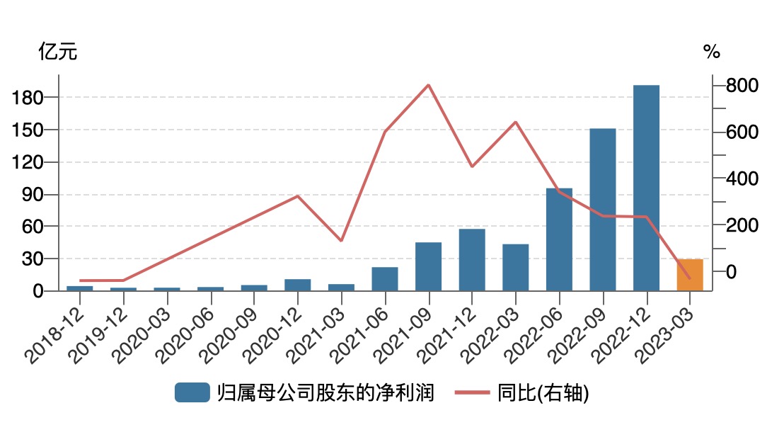 2022年,大全能源(688303.SH)以191亿元归母净利润在最赚钱A股光伏公司排行榜上位列第二,仅次于同为硅料龙头的通威股份(600438.SH),其盈利增速甚至较通威更快。但今年一季度,大全的业绩增长突然熄火。