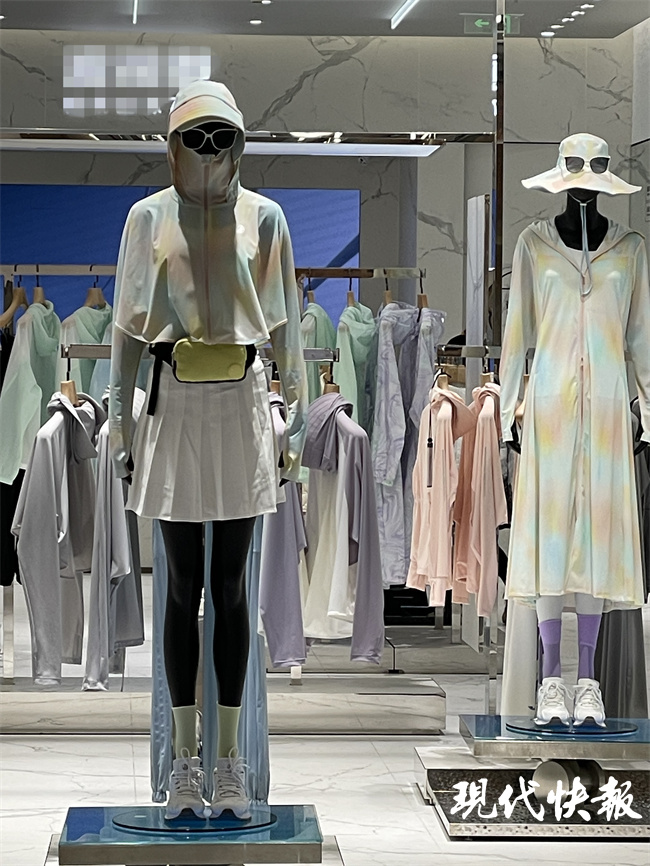 5月10日,现代快报记者在南京雨花台区一综合性商场内,很容易就找到了三家售卖防晒衣的门店,它们之中有专门做服装的品牌店铺,也有小商品集合店铺。