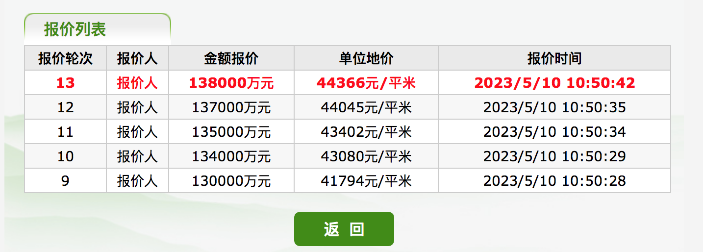 据南京市国有建设用地使用权公开出让网上交易系统,NO.2023G13地块(秦淮区南部新城汇秀路以南、祥天路以西地块)在经过25轮报价后成交,竞得者为保利江苏房地产发展有限公司,最终竞得价24.1亿元,成交楼面价34383元/平方米,溢价率11.06%。