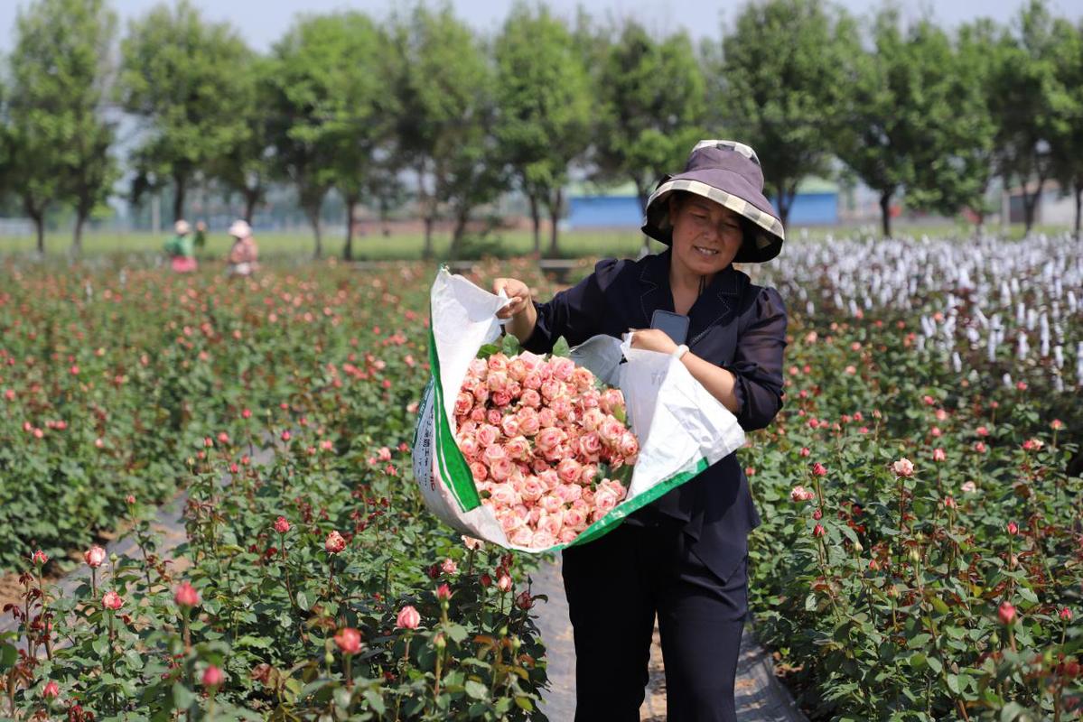 特色玫瑰花种植不仅让合作社收获了财富,也让工作在花海中的花农们收获了喜悦。“我是柏香的,在花地干活都好几年了,来这干活心情挺好的,又能赏花又能挣钱。”花农黄利霞高兴地说。