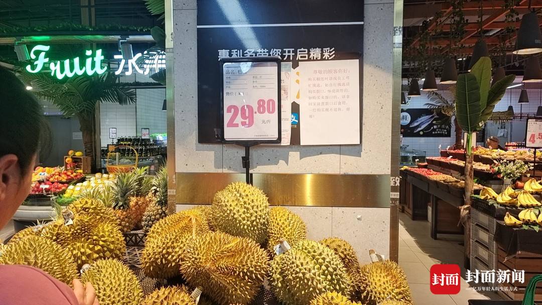 针对此次事件,5月11日,记者走访了成都水果市场,在武侯区的一家超市看到榴莲卖到29.8元/斤,两天前市场多数的榴莲价格还是26元/斤、27元/斤左右。一位在成都濛阳市场拿货的零售商告诉记者:“5月9日的进货价格是24元/斤,今天已经涨到30元/斤。”在各个社交平台上,也有多地网友表示榴莲价格比起前几日有所上涨。