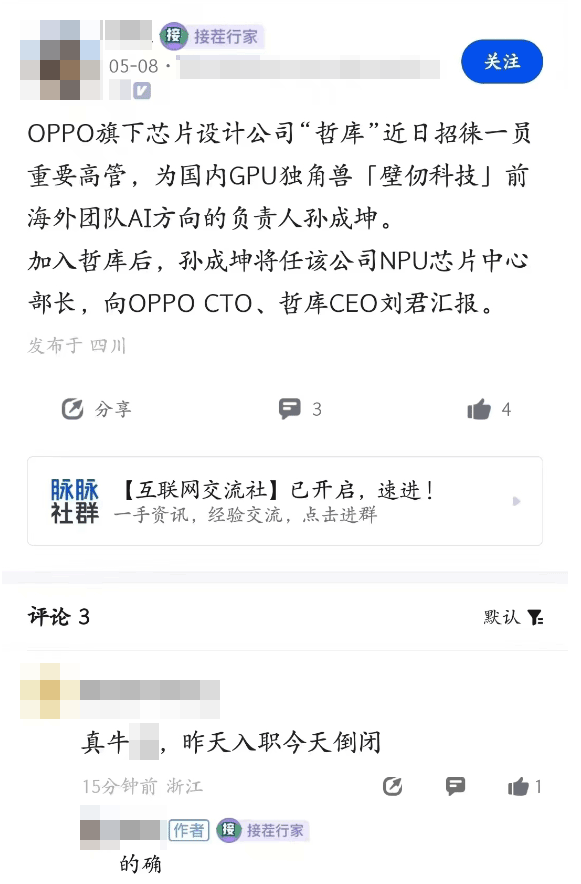 “太突然了,ZEKU就这样没有了。”对于ZEKU解散,多位芯片行业人士感慨。毕竟,网传不久前OPPO还在招聘高管,应届生的招聘也在进行中。业界透露,OPPO整个芯片团队超过3000人,此次终止业务意味着大部分人要离开公司。