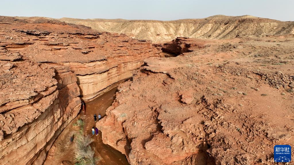 5月13日,游客在内蒙古阿拉善盟阿拉善左旗西部梦幻峡谷景区参观游玩(无人机照片)。