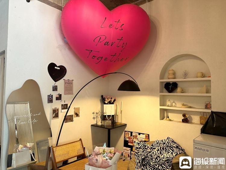 “我是1998年出生的,2019年在工作室售卖蛋糕,因为订单量加大所以在2021年开了实体店。”店开起来以后,张月经常会根据不同节日在店内设计布置不同的场景,今年情人节时她就在店里设计了一个巨型“爱心”,一度成为济南“最火网红打卡点”之一,“这个爱心角落当时吸引了很多顾客前来打卡拍照,那几天基本上店内顾客爆满。”