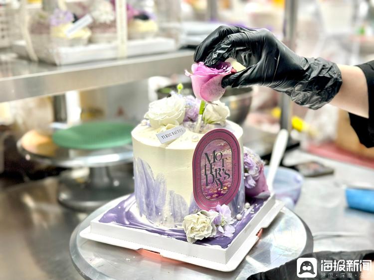 5月11日,在济南市高新区“一口奶油·甜品实验室”店内,工作人员正在紧锣密鼓地准备着母亲节的蛋糕订单,“目前已经预定了近90个母亲节款式的蛋糕,紫色系鲜花蛋糕售出的最多。”该店主理人张月告诉记者,往年母亲节会售出近300个蛋糕,今年询问量和预订量都有所提前,销量会提升10%-20%左右。