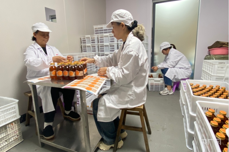 小稠村试水枇杷茶饮,村民正在进行包装工作(央广网记者李晓晓摄)