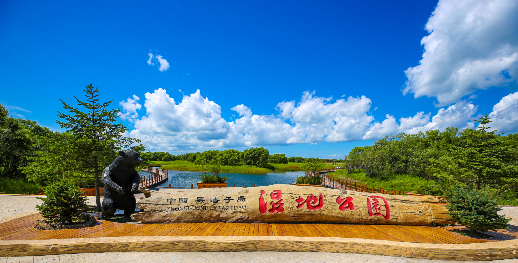 黑瞎子岛湿地公园以水和湿地景观为主体,以木栈道的形式设置游览路线,用最贴近自然的方式展现了黑瞎子岛生态湿地所特有的原生态景观。在这里,登上全景平台,游客可以一览湿地全貌,体会亲水、亲绿、亲近自然的惬意。
