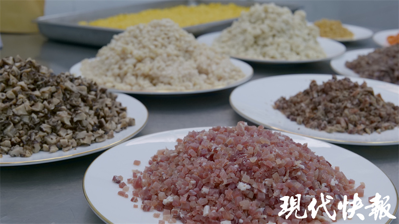 “正宗的扬州炒饭有虾仁、海参、瑶柱、火腿、牛肉等10多种配料,而且制作非常讲究。”赵祥强告诉记者,由于食材多样、追求本位,因此看似简单的扬州炒饭,要想做成预制产品,工艺转换难度却非常大,“可能一种材料做出了预制成品,但和其他食材混合在一起后,效果又不行了。”赵祥强告诉记者,研发过程中最难的还是米饭的制作,而市场上不少炒饭预制产品多使用“重组米”,口感难以达到标准。“本来扬州炒饭对米饭的要求就非常高,如何在工业化制作、冷冻、加热后依然保持口感,非常困难。”为此,赵祥强先后实验了100多种稻米,在实验了2吨多大米后,最终选择了一款东北大米。“米的品种很重要,米饭的制作也有标准化流程,淘洗、沥水、蒸煮等等都有详细标准,这是我们的核心技术。”