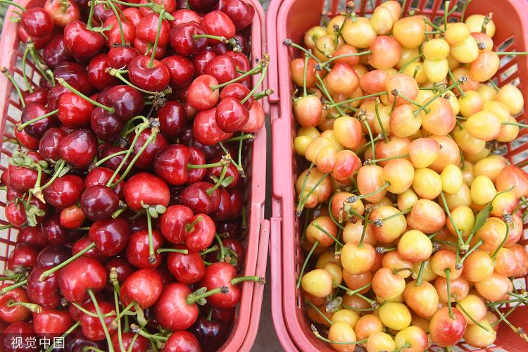 买樱桃时,我们要选择颜色偏暗红的樱桃,这种口感会比较甜。如果颜色发浅,樱桃口感发酸。