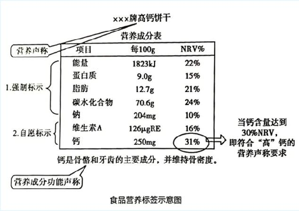 高钙:钙含量≥240mg/100g或120mg/100mg