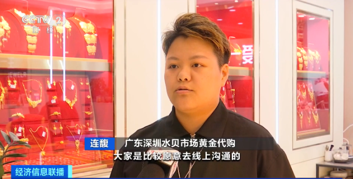 广东深圳水贝市场黄金代购 连馥:大家比较愿意线上沟通,节省交通费用,第一时间可以看到款式,我们最高峰销售量一天有100多件货。