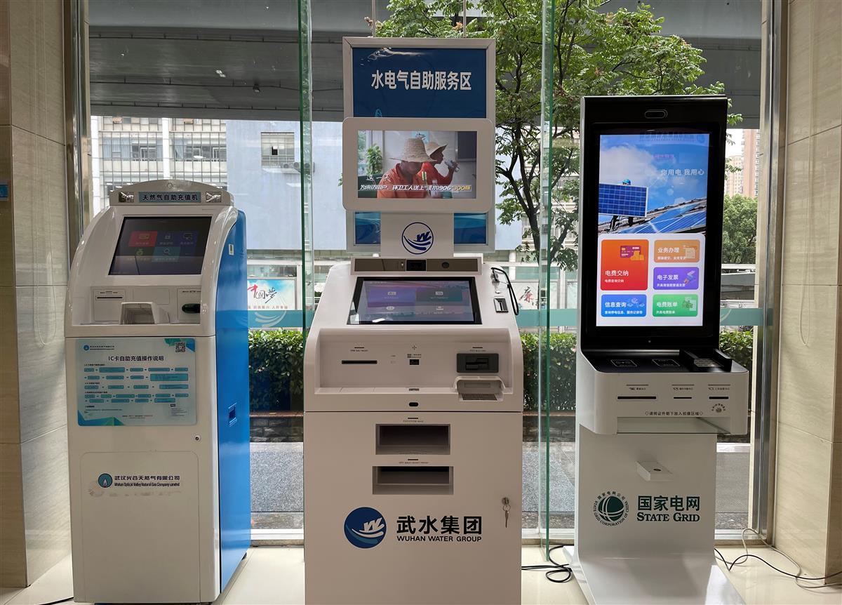 极目新闻记者在现场看到,在营业大厅的一侧摆放有三台自助终端设备,分别标着武汉天然气、武水集团和国家电网的字样。田佩丽引导周阿姨来到天然气的自助机上,熟练地帮她办理了缴费和圈存业务。