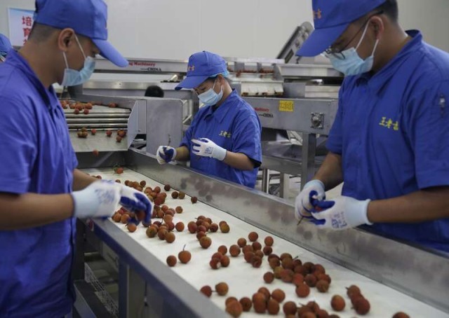 据介绍,荔枝从“田头”走向消费者和生产线的过程中,最初一公里损耗率为15%至25%。因此,“田头小站”便成了降低损耗率、提升保鲜期、延长销售期的重要创造。目前,广东荔枝跨县集群产业园已在茂名建设了16个“田头小站”,荔农将新鲜荔枝直接放入“田头小站”,通过分拣、打包、称重、分装、冷藏等工序,大大降低了田头损耗,延长销售和进一步加工周期,推动荔枝产业向着精深加工方向转型升级。
