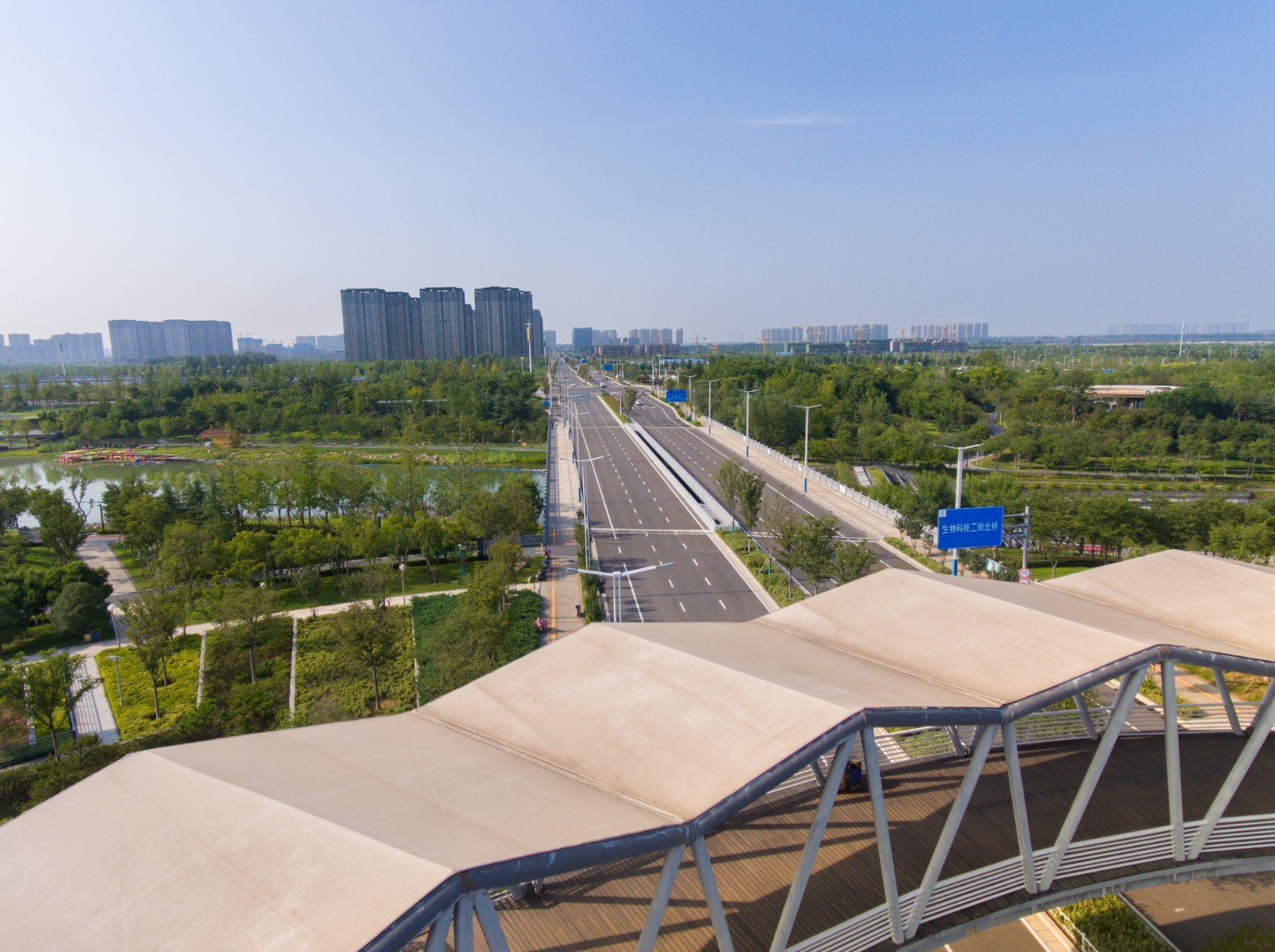 当天上午,郑州航空港阳光和煦、微风拂面。与会嘉宾来到位于双鹤湖中央公园的城市会客厅进行现场考察。城市会客厅位于公园南一路与雍州路交叉口,以“擎动·航空芯城”为主题,向公众展示了郑州航空港的建设成就,是郑州航空港对外开放的重要名片。