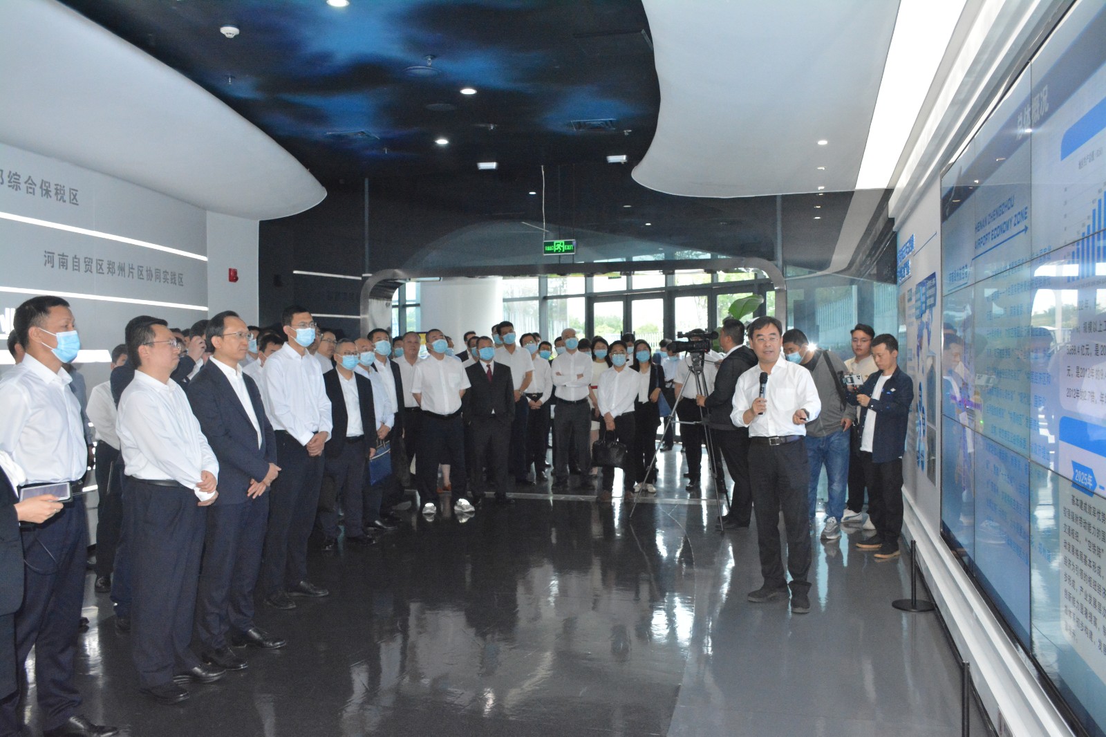 在展示大厅,郑州航空港区管委会副主任郭鹏向嘉宾们介绍航空港发展成就,并通过高科技手段全方位、多角度地展示航空港区域发展演变、建设成果和宏伟蓝图,展望发展潜力和美好未来。
