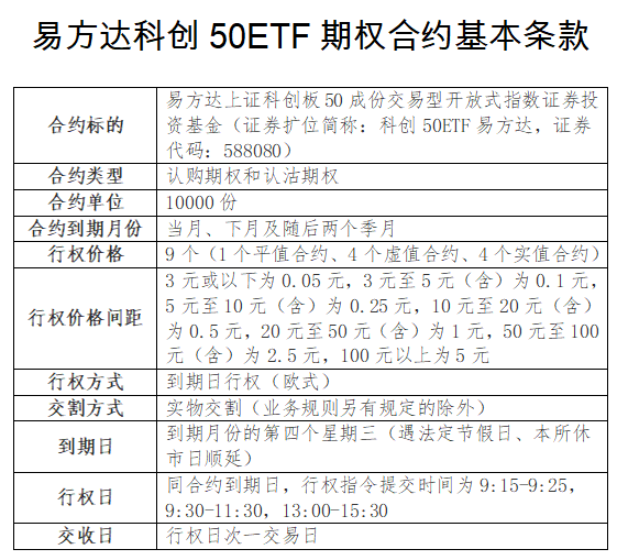 上交所表示,自2023年6月5日起按照不同合约类型、到期月份及行权价格,挂牌相应的华夏科创50ETF期权合约和易方达科创50ETF期权合约。首批挂牌的期权合约到期月份为2023年6月、7月、9月和12月。