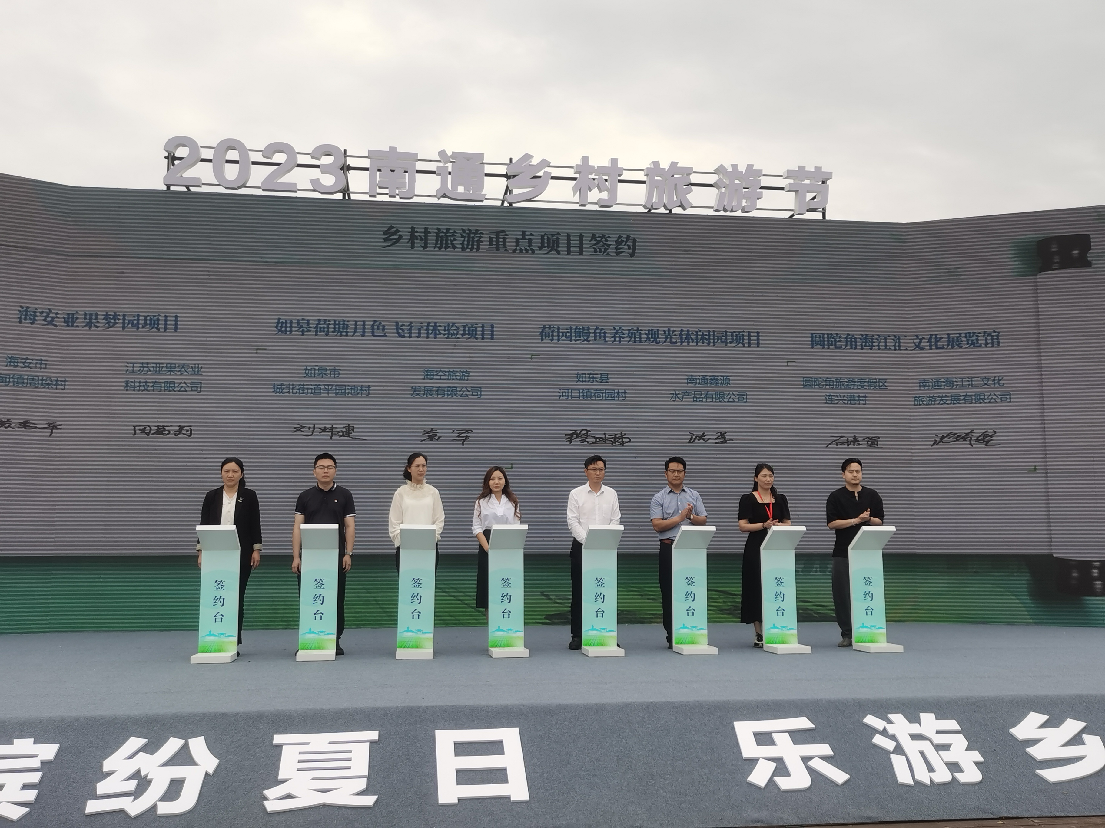 开幕式上,集中展示了近年来全市乡村旅游的发展成果,公布了全市“生态体验、休闲度假、乡土文化、特色创意”4大类别50项乡村旅游旅游新产品新项目,发布了全市暑期乡村旅游采摘地图、暑期赏荷避暑地图,以及崇川都市农业“又见田园”系列产品和5大主题的60项活动,邀请旅游达人围绕“耘耕江海·‘乡’约南通”发布了全市4条精品旅游线路,同时围绕拉动乡村旅游消费主题,结合当地乡村旅游重点村建设、“非遗进景区”活动等工作,展示全市各地乡村旅游可玩、可购、可体验的特色文旅产品、非遗技艺、文创伴手礼、农特产品,一批乡村旅游新项目集中签约。飞猪网、支付宝、南通农商行等OTA企业以及助农金融单位围绕助推南通乡村旅游高质量发展发布了系列产品和产业政策。