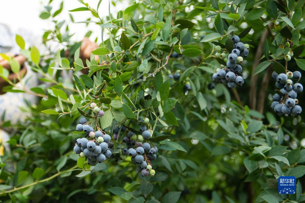 这是6月3日在冷水江市金竹山镇新田村蓝莓基地拍摄的蓝莓。新华社记者陈思汗摄
