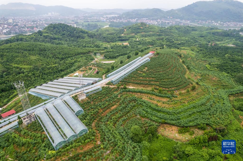 这是6月3日在冷水江市金竹山镇新田村拍摄的蓝莓基地(无人机照片)。新华社记者陈思汗摄