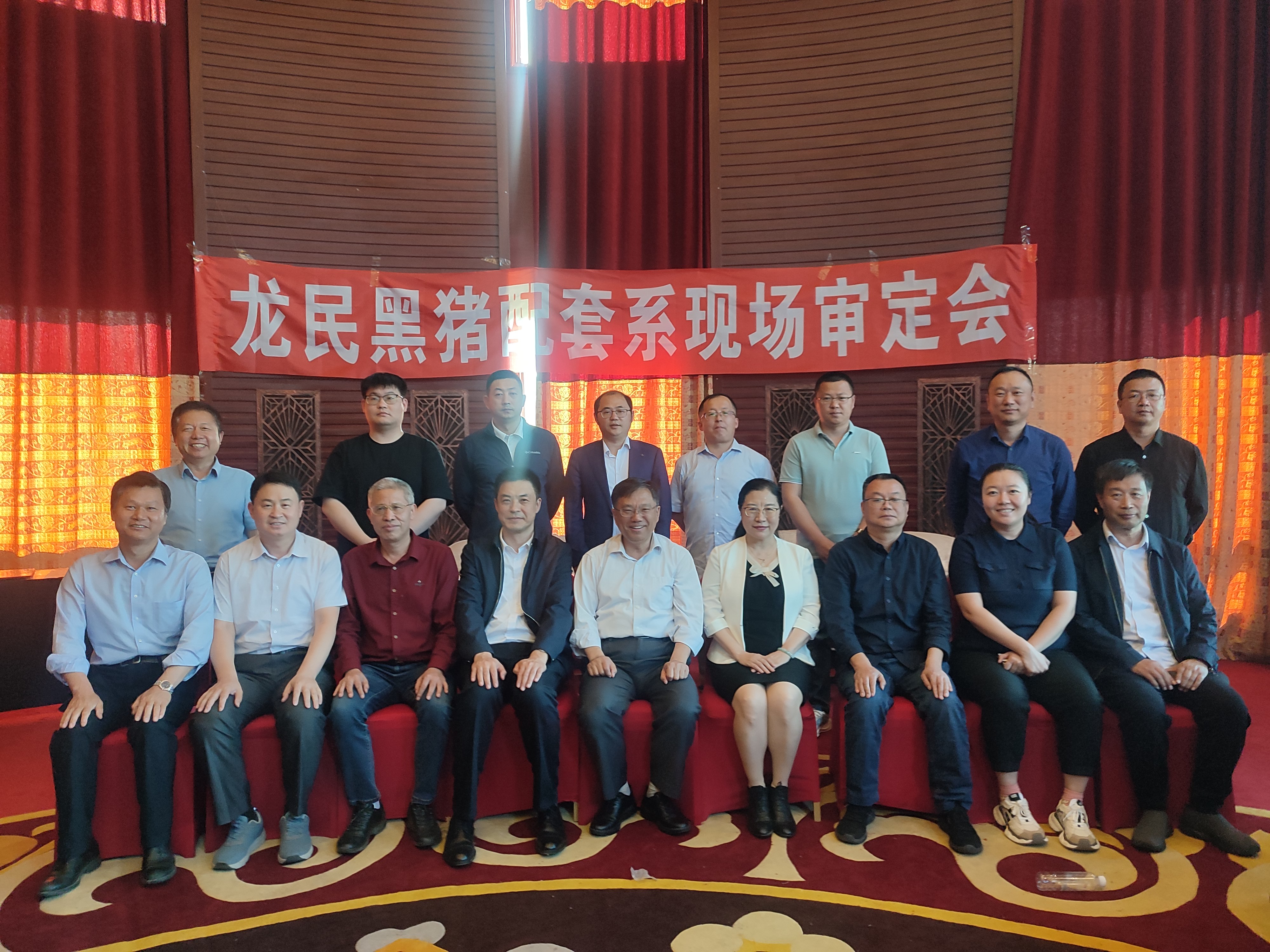 在由全国畜牧总站组织的“龙民黑猪”配套系审核会议上,全国畜牧总站党委书记时建忠、畜禽资源处处长于福清、畜牧师程文强和审核专家组专家查阅审定申请资料,听取育种团队带头人刘娣研究员育种工作汇报,对配套系育种方案、实施内容、技术指标、措施、结果等进行了质询提问,育种团队刘娣、何鑫淼、张树敏、龚思诺等进行了解答,最终专家组一致认为数据翔实准确、育种成效显著、市场空间较大,一致同意“龙民黑猪”配套系通过现场审核。