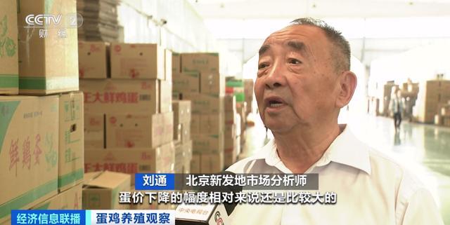 北京新发地市场商户饶继红:新鸡开产了,老鸡淘汰得少,所以鸡蛋比较充足。