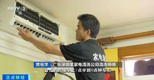 广东深圳某家电清洗公司清洗师傅曾宪学:最忙的时候早上7点半到8点左右就要到客户家,忙的时候得到晚上10点左右。一般客户家里面是三到四台空调,有一些可能有五台。