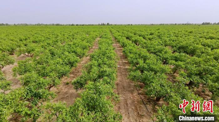 “枣林进,沙丘退”。沙漠与枣林相融是第十四师昆玉市一道独特的风景。记者在该市周边看到,一眼望不到边的枣林正吐叶披绿,就像值守在沙海中的哨兵,虽不算高大,但迎风挺拔!