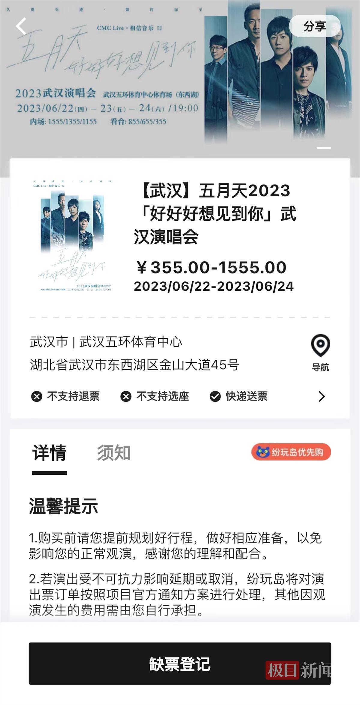“武汉场目前还没有要求强实名,但是就怕像杭州场一样突然要求强实名,那就亏了。”一位黄牛票务向极目新闻记者透露,很多同行因为担心会临时通知强实名,暂时没有做这次五月天演唱会的“生意”。