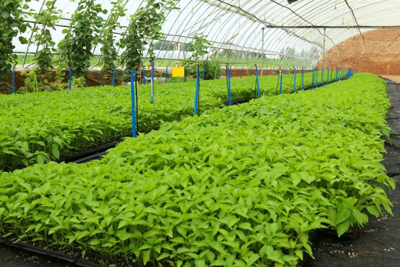 鄂托克前旗塑料拱棚采用滴灌方式育苗(李鹏飞摄)
