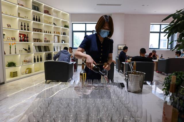 6月12日,张裕酒文化博物馆工作人员为游客准备品鉴用的葡萄酒。新华社记者 朱峥 摄