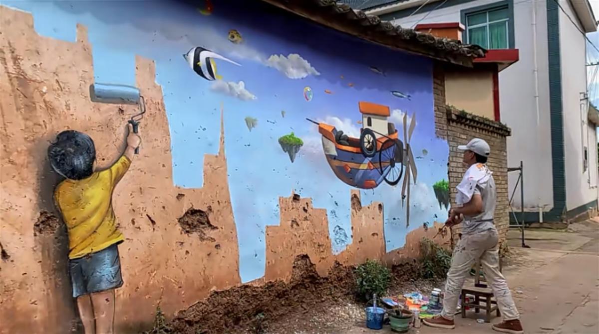 另有抖音博主“刘小备”,他的短视频账号记录了他在家乡大白墙上绘画的故事,透过他的视频,人们得以窥见云南乡村的风景。今年以来,他的家乡吸引了不少游客。