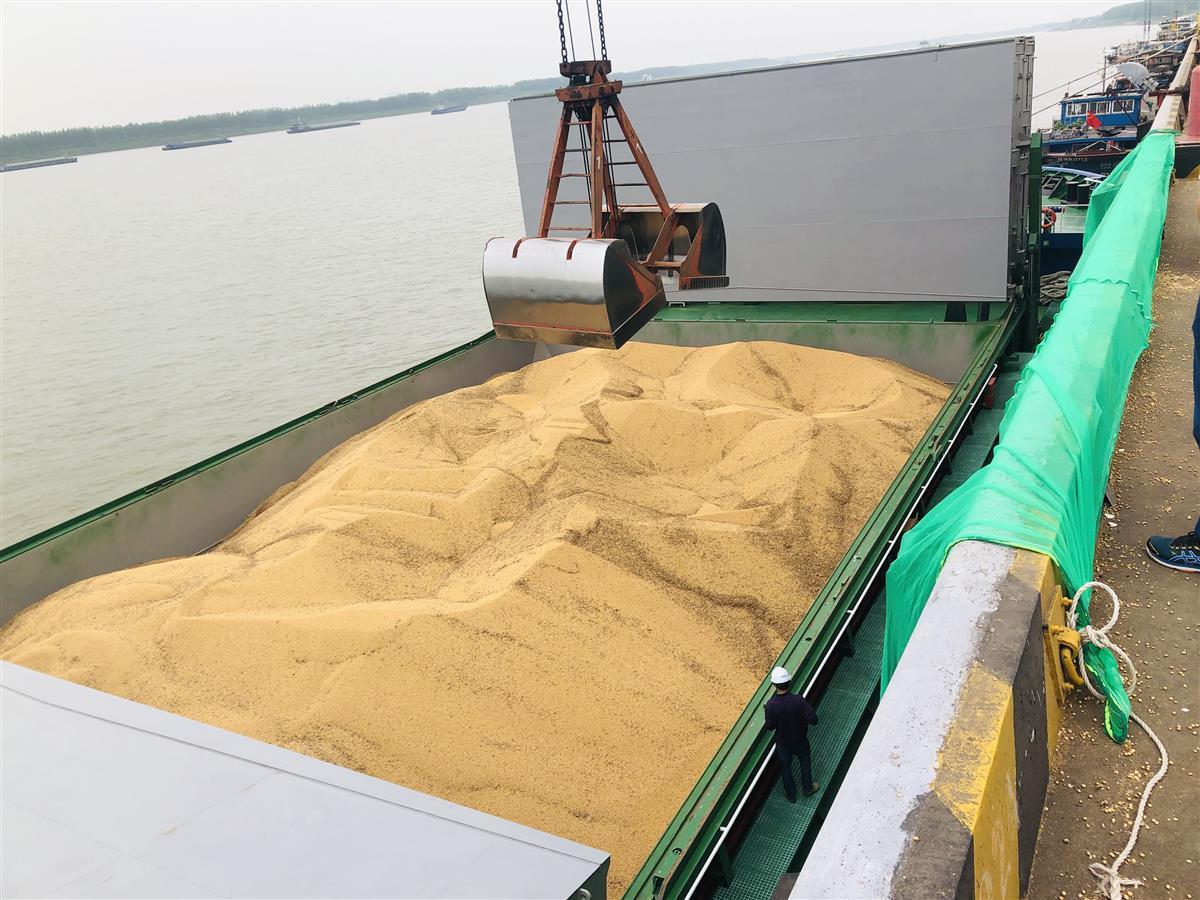 日前,装载巴西进口大豆的“江海直达66”号万吨海轮,从宁波舟山港老塘山码头出发,历时7天直达武汉经开区汉南港区水洪口作业区,在武汉和润物流有限公司2号泊位卸船。这批进口大豆近1.2万吨,将供给武汉中海粮油工业公司加工成食用油。