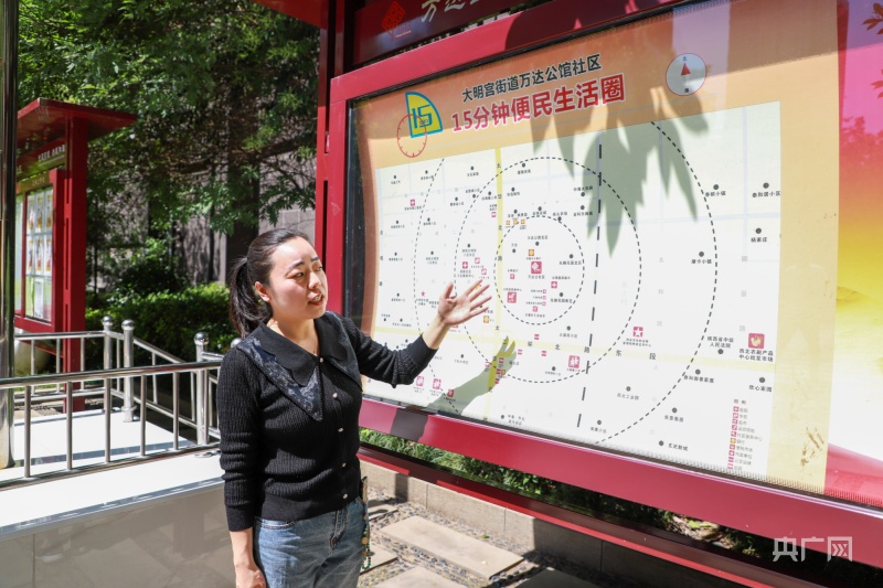 这一民生实事如何做实做细?如何让百姓切实感受到便利?近日,记者走进西安市未央区大明宫街道万达公馆社区,一幅醒目的“15分钟生活圈”示意图张贴在显眼处,图中对社区、学校、写字楼、超市、医院等位置都做了详细的标记,居民的便利生活“看得见”。