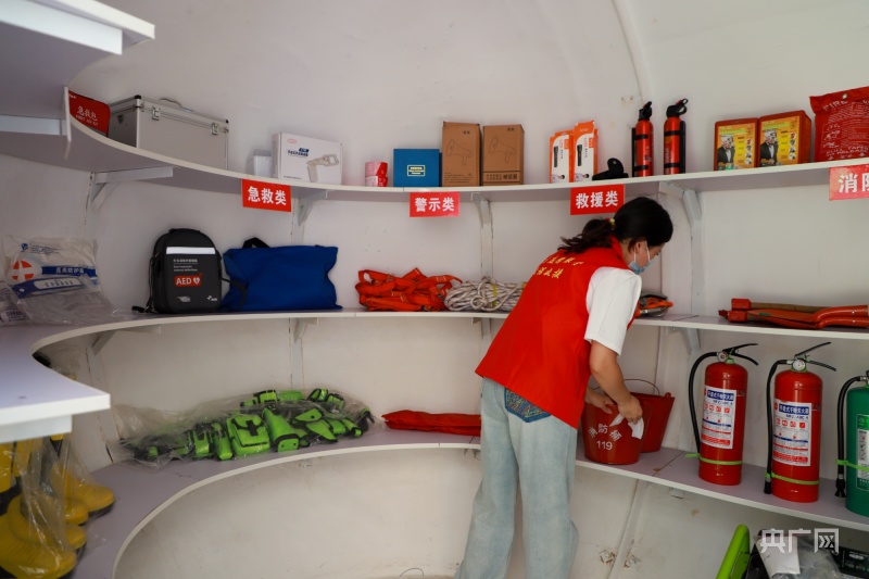 万达公馆社区“一刻钟便民生活圈”只是大明宫街道打造的众多“一刻钟便民生活圈”其中一个,在大明宫街道先锋社区,记者看到社区利用空地专门设立了应急救助站。应急救助站中不仅能看到一应俱全的消防应急设备,还配备了急救类的相关物资,包括自动体外除颤器等设备,供社区居民应急使用。