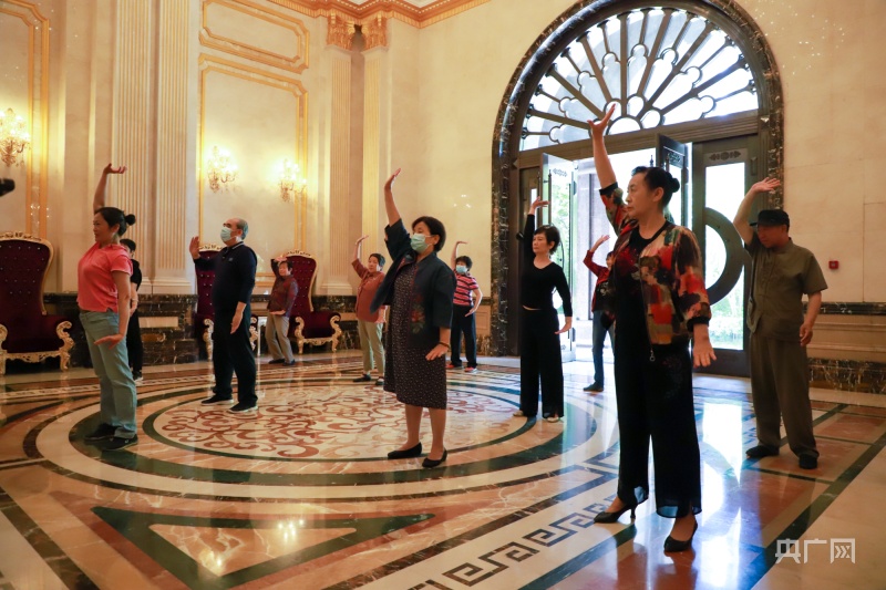 社区居民在志愿者老师的带领下锻炼身体(央广网记者侯凯奇摄)