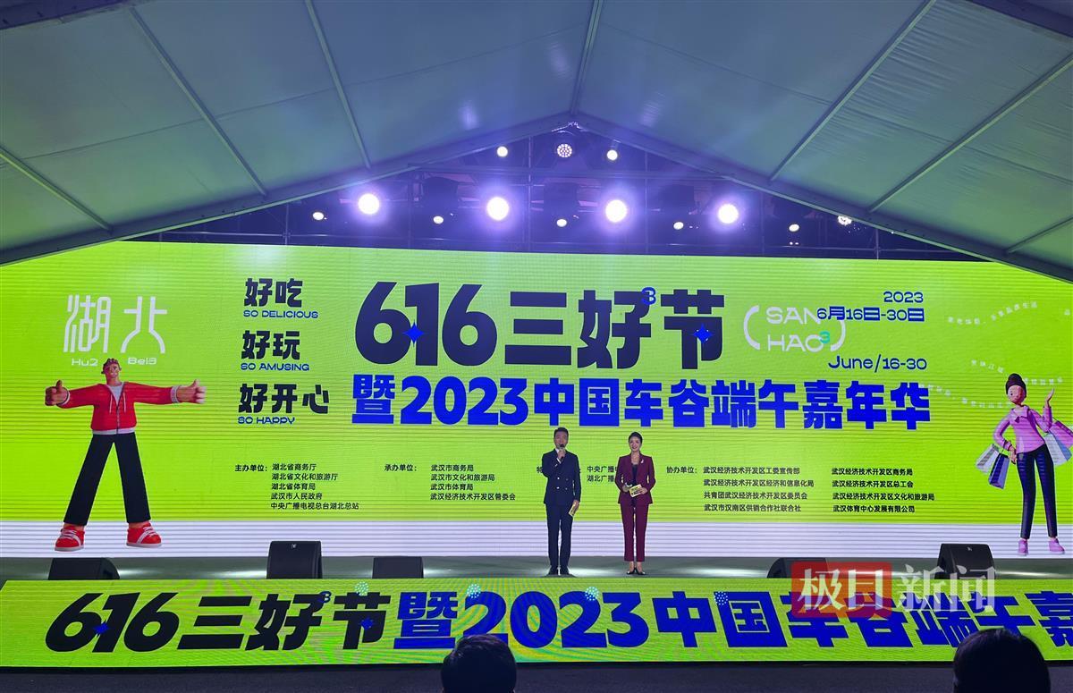 6月16日,由湖北省商务厅、湖北省文化和旅游局、湖北省体育局、武汉市人民政府主办,武汉市商务局、市文旅局、市体育局共同承办的“6·16三好节”暨中国车谷端午嘉年华以及“2023武汉国际消费季”于武汉体育中心和武汉万象城同步启动。