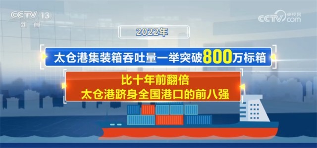 2012年,太仓港的年集装箱吞吐量只有400万标箱。2022年,太仓港集装箱吞吐量一举突破800万标箱,比十年前翻倍,太仓港跻身全国港口的前八强。