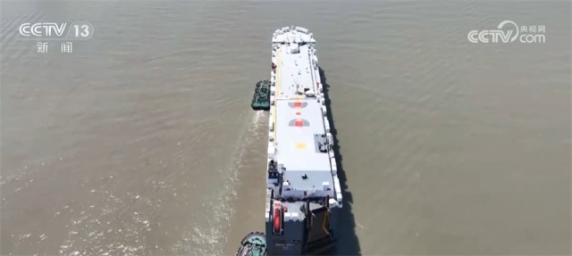 总台央视记者陈俏:我身后的班轮装载的就是从长江中上游各港口城市运送来的物资,这些物资从我所在的太仓港集并出发,运往上海港口出海。像这样的班轮在当地有一个形象的名字叫水上巴士,这样的巴士平均每小时就可以发送一趟。