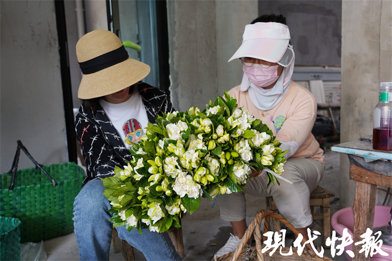 如今,响堂的栀子花种植规模约有120亩。浦口区华光社区副主任高玲介绍,随着响堂栀子花名气的增强,近年来出现了供不应求的现象,社区正在引导村民扩大种植规模。与此同时,也在拓宽销售渠道。除了卖给传统的花贩、鲜花供应商,现在,响堂栀子花也上线了电商平台。2021年,社区和华润苏果合作,在超市就能买到响堂的栀子花。2022年,社区又和叮咚买菜合作,外卖就能买到。“去年23户农户提供了2万把栀子花在叮咚买菜销售,销售额达到33万元。”此外也开展了团购、亲自采摘等渠道。