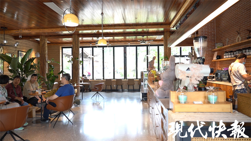 栀子花只开一个月,如何更大限度地延长它的“花期”,是社区这几年一直在探索的。成规模的栀子花田、栀子花采摘,已经吸引到了山外的游客,游客来了以后怎么才能留住?高玲介绍,近年来,响堂和网红咖啡品牌合作,引入了一家咖啡店,并以响堂特色命名为“栀咖啡”,让游客不仅可以赏花、看花,还可以品花。6月15日是周四,工作日的上午,咖啡店里也几乎坐满了人。市民钟先生一家从市区开车过来,“响堂的栀子花很有名气,这家咖啡店在网上也很火,我们就想过来玩一玩。山里面蛮舒服的。”在不久前的“五一”假期,店里平均每天能卖出500杯咖啡。