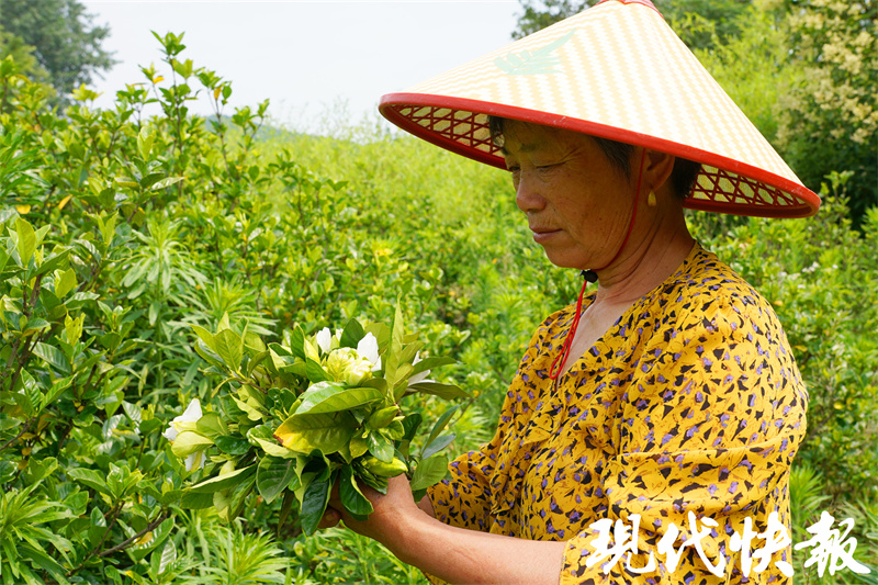 种了一辈子地,种花还是头一次。买来花苗后,先是种在田里,又移植到山上,就为了看种什么土里能长得好。看到路边的栀子花开得好,她就掐下来一支,扦插移植到盆栽里,尝试养活。从育苗到花开,她等了3年。“花开好了,我们就自己拿到南京城里去卖。后来越种越多,来不及卖了,就喊花贩上门来收。”栀子花花期只有一个月,除了卖花,他们也会卖栀子盆栽来增加收入。现在,他们家每年靠卖栀子花能有六七万的收入。