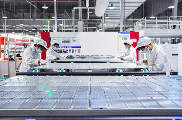 走进江苏东磁新能源科技有限公司电磁组件生产车间,16条自动化生产线全速运转,偌大的5G智能车间里,仅有几十名工人操作。在串焊生产工位,工作人员在面板上输入生产指令,上料后,生产工序即可自动运转。“机械臂生产的光伏片,可以自动传输到光伏玻璃区域,自动粘贴。”车间工作人员许肖肖告诉记者,整个生产全流程可视化、可追溯,一旦出现问题产品,设备可自动发现,避免进入下一个流程。