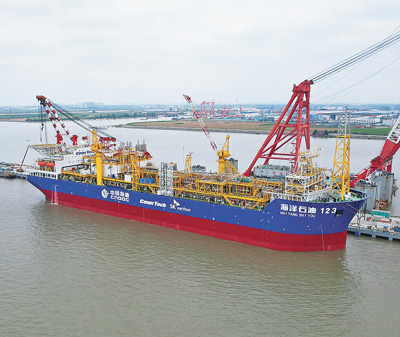 本报南通6月19日电(记者张武军)由中海油能源发展股份有限公司投资建造的我国首艘全新智能FPSO(浮式生产储卸油装置)“海洋石油123”,近日在江苏南通完成陆地建造并成功交付,标志着加快推进海上智能油田建设取得新进展,对于实现我国能源产业与数字技术深度融合,推进能源数字化转型和智能化发展具有重要意义。