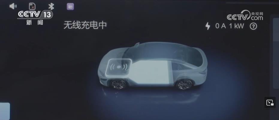 在江苏南京,一辆电动汽车正驶入智慧车网互动充电平台进行无线充电。通过车载无线充电App,可以看到车辆的实时充电状态。