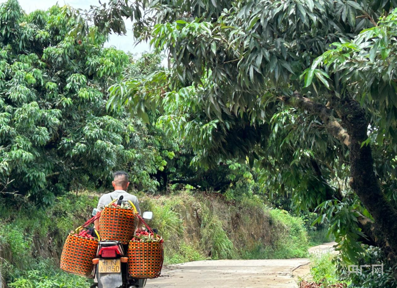一位村民在运输收获的荔枝(央广网记者黄月芬摄)