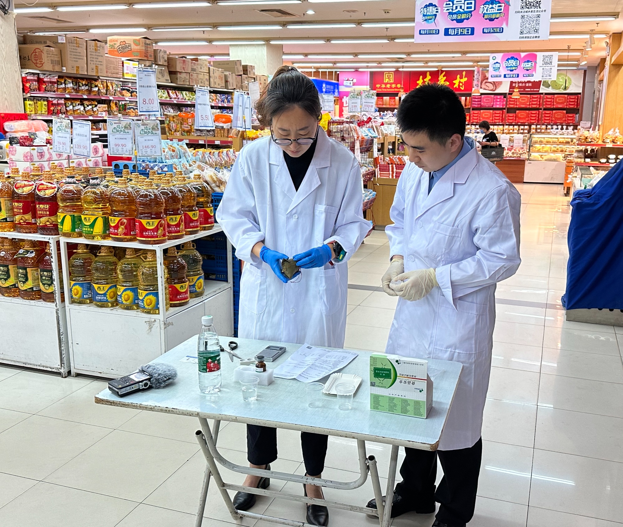 在超市里,执法人员先检查了相关食品的进货查验记录、索证索票、货票相符等制度落实情况,检查是否有不明渠道的食品流入市场。