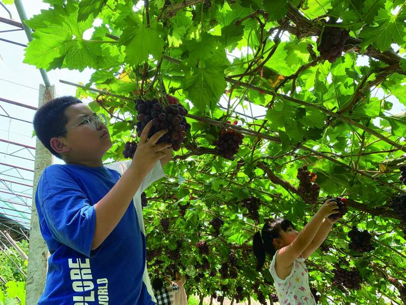 “香妃”“乍娜”“玫瑰香”“美人指”“巨峰”“阳光玫瑰”……一个个耳熟能详的葡萄品种,在马坊镇约120余亩的葡萄种植园里都能找得到。眼下,年产量30余万公斤的“甜葡萄”成熟待摘,采摘期可持续至10月底。