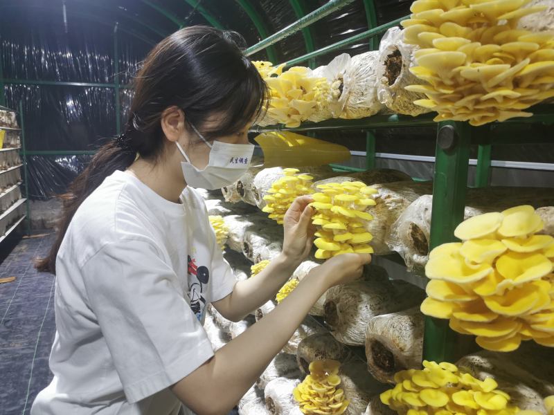 “温度要控制在18摄氏度以下,每天要三次喷水保持湿度……”谈及食用菌的管理,高俊艳不由感叹不容易。她会定期邀请科研院所来基地开展技术指导,帮助解决生产过程中遇到的技术难题。如今,在食用菌种植基地工作人员的精心培育下,榆黄菇、白平菇、鸡腿菇等菌棒长势喜人,受到了很多游客的追捧。食用菌订单更是遍布周边民宿及民俗接待户,需要提前预订才能买到。