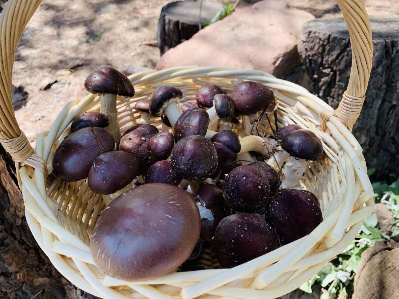 下营村近几年正在探索生态休闲为主的森林旅游产业,以村企联建模式,成功打造了清泉云顶松林营地。2022年秋天,在营地旁的松林下成功种植了近20亩赤松茸,现已进入采收期,村民正在忙着采收。
